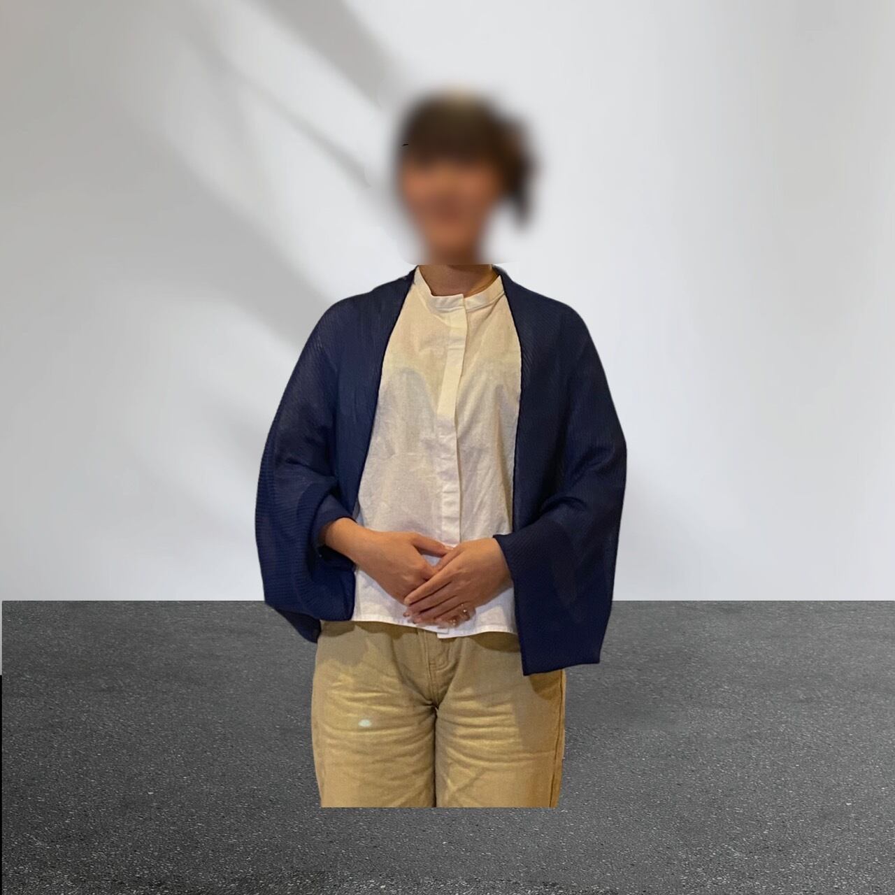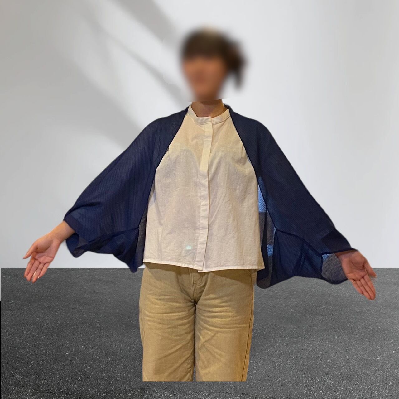 丈が長いなと感じたら、首元を重ねて衿のように着こなすのも素敵ですね。