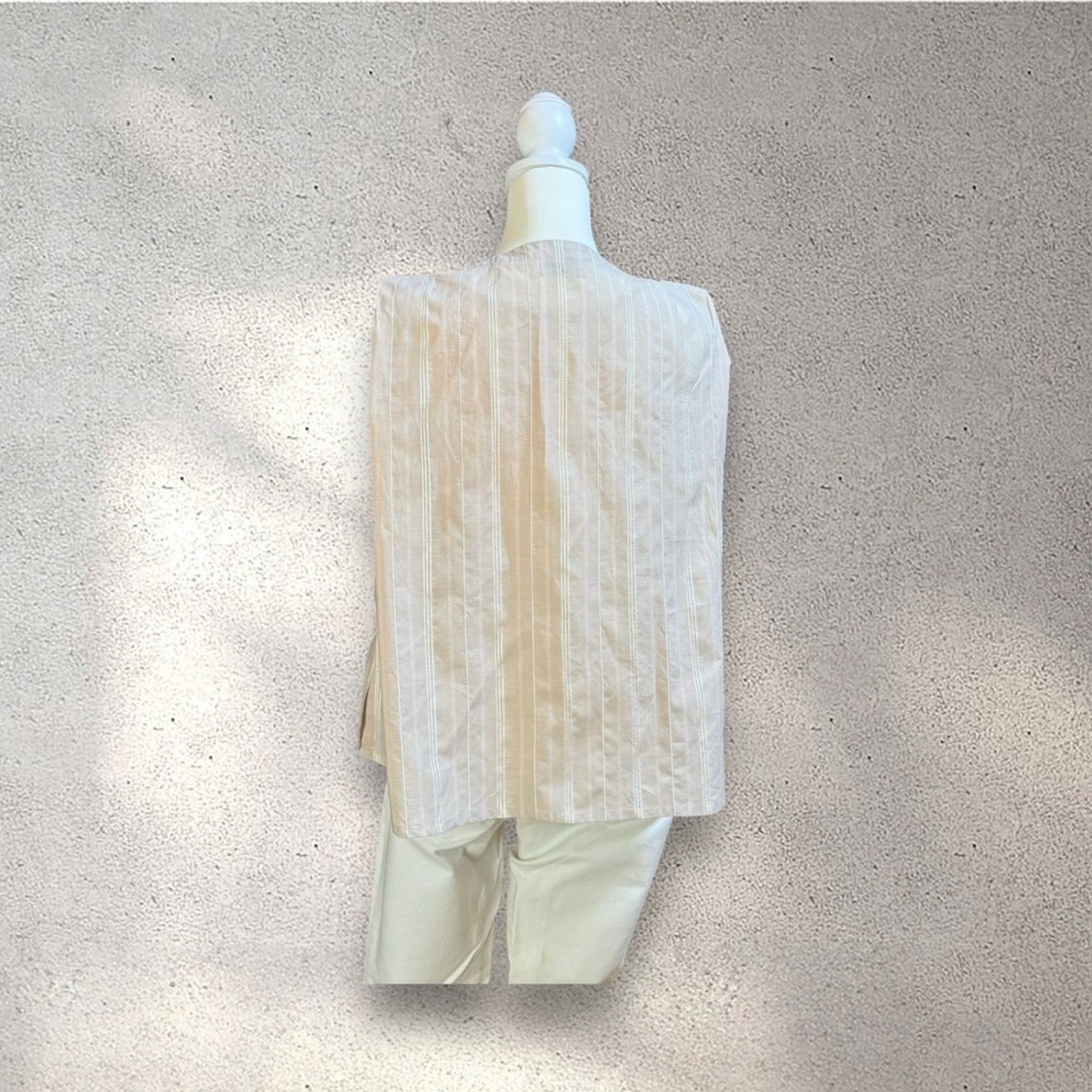 ベージュの地に白の織りのストライプが入った、おしゃれな生地。